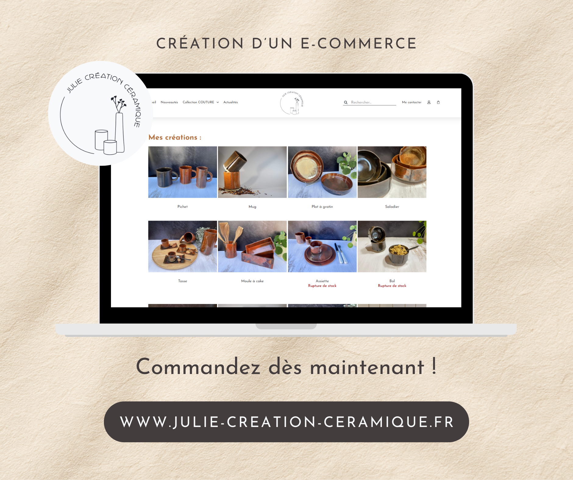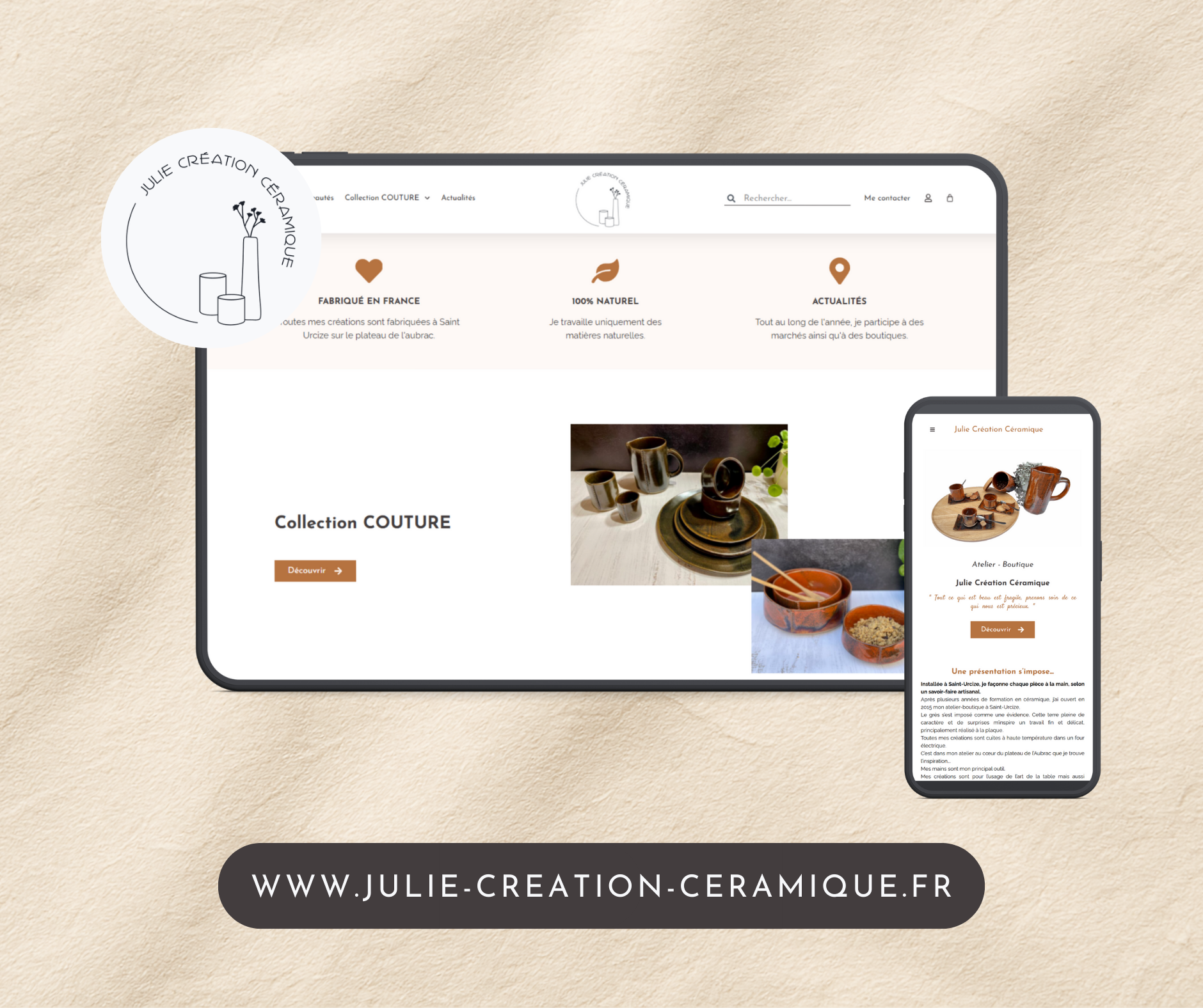 Grâce à ce site e-commerce, Julie Création Céramique dispose aujourd’hui d’un véritable outil pour présenter son univers et vendre ses créations au-delà de sa région. Le site participe ainsi à la mise en valeur de son travail artisanal et à la visibilité de son atelier.